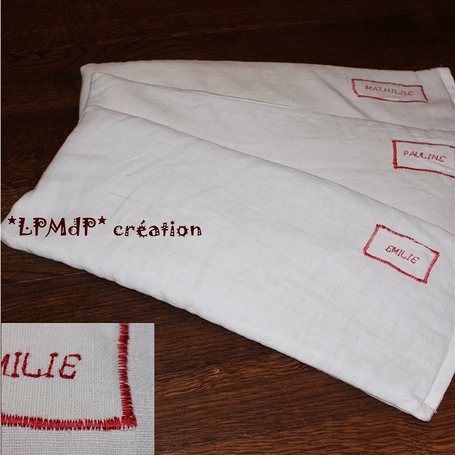 Elles contiennent des graines d'épeautre et le tissu est du coton blanc de drap des nos grand-mères !