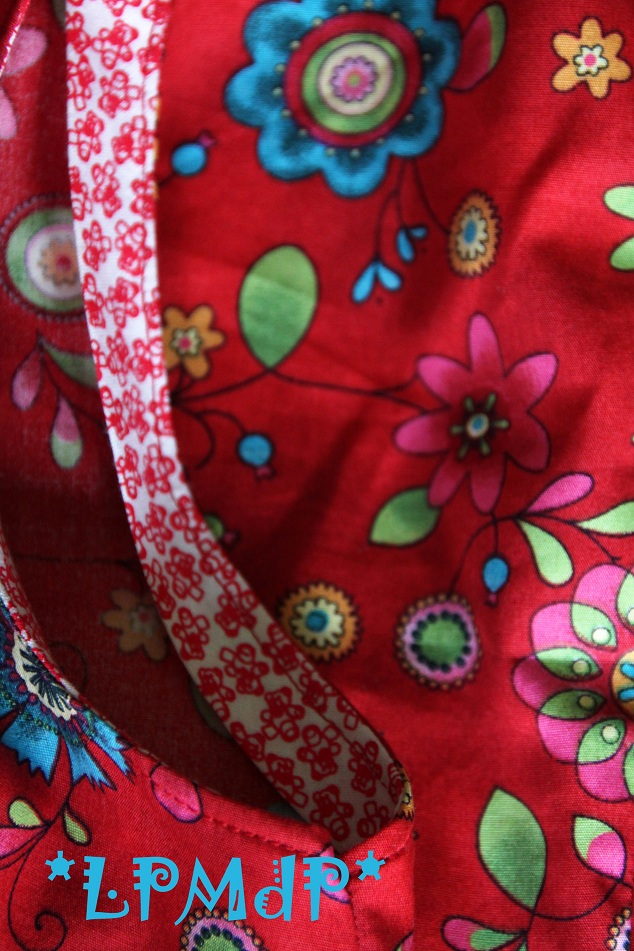 Les photos ne rendent pas la jolie couleur du tissu, à l'occasion, si je fais des photos extérieurs, j'en rajouterais !